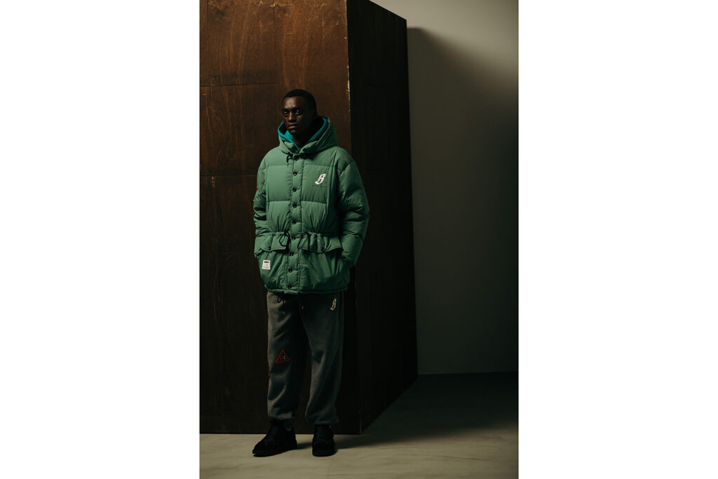 また、700フィルパワーという優れた保温性と軽量性を兼ね備えた高品質なダックダウンを採用。ファブリックとフィッティングは現代仕様にアップデートされていますが、オリジナルの持つクラシックな魅力を忠実に再現し、特に注目すべきは、2色展開のうち、グリーンが今回のコラボ限定の別注カラーとして企画されている点です。これは、アウトドアのヘリテージを色濃く残しつつ、ストリートでも際立つスペシャルな一着です。