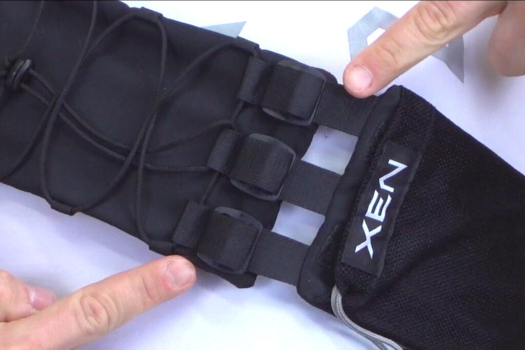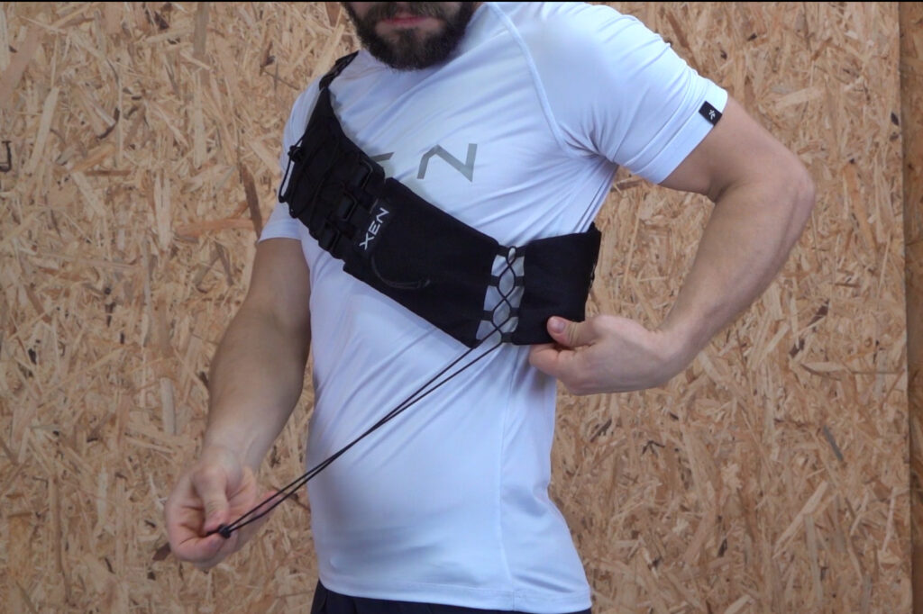 「XEN Orbiter」の最大の特徴は、一般的なランニングバッグが抱える揺れやズレを、独自のメカニズムでシャットアウトした点にあります。この核となるのが、チェコ国内で特許を取得した「3点固定システム」です。従来のバッグは、走行時の上下動に対してバッグ本体が追従できず、身体から離れて揺れが発生していましたが、Orbiterはこの3点で身体に密着・固定することで、揺れを最小限に抑え込みます。