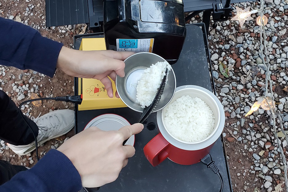キャンプ場に到着し、チェックイン後の数時間はテントの設営や荷解きで戦場のようになります。その間、ずっと火のそばに付いていなければならない飯盒炊飯は、実はかなりの負担です。そこで、「ていとうシェフ ちびっこ」があれば、米と水をセットしてスイッチを押すだけ。火加減の調整は不要でマイコン制御で最適な炊き上がりを約束してくれるため、吹きこぼれや焦げ付きの心配がありません。