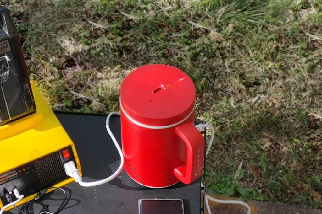 中容量のポータブル電源であれば、数回の炊飯を行っても余裕があり、スマホの充電やLEDランタンの電力も十分に確保。本体サイズは幅16.5cm × 高さ20.4cmで車載スペースを圧迫せず、ちょっとした隙間に収まるサイズ感は、荷物が増えがちなキャンプや車中泊において最強の武器となります。