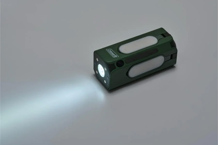 これにより、卓上に置いて読書灯にしたり、パネルを開いて上下左右全方向に光を拡散させたりと、状況に合わせたライティングが可能です。また、フラッシュライト(懐中電灯)モードも搭載しており、夜間の移動時にも頼れる存在となります。