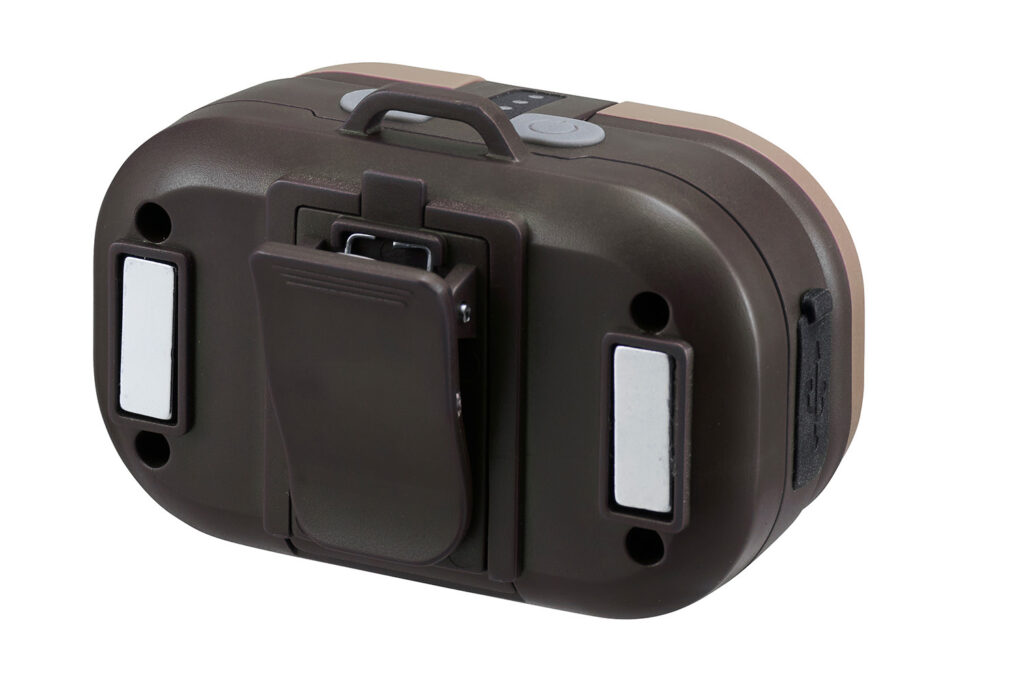 本体底面にはマグネットが装備されており、車のボディやスチール製のテーブル、ラックの支柱などにピタッと固定できます。さらに、一般的なカメラ三脚用のネジ穴も備えているため、カメラスタンドに取り付けて高所から照らすことも可能です。この「どこにでも設置できる」汎用性は、これまでのキャンプライトにはない強みです。