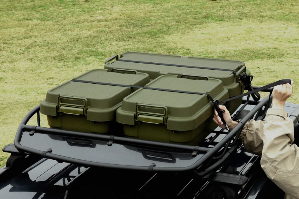 50S LOWは本体が低いため、車のルーフキャリアへの積み下ろしが非常に楽になります。また、重心が低くなるため走行時の安定感も向上。蓋にはベルトガイドが装備されており、向きを選ばずにラッシングベルトで固定できるため、オフロード走行時でも中身を安全に運び抜くことが可能です。「生きて帰って来られる」ランクルの精神を支えるタフな収納と言えるでしょう。