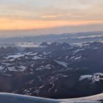 10年前に一度、アラスカにいる友人を訪ねたことがあります。その時の大自然のスケール、そして人々の逞しい暮らしぶりに感動し、「いつかまた必ず」と思っていましたが、急に思い立ち、夏の終わりに再訪を決行しました。アラスカの州都アンカレッジへは、サンフランシスコからカナダを縦断する国内線で向かいます。上空から見下ろすカナダとアラスカは、どこまで行っても果てしなく山、山、山。その広大なスケールに、少し怖いくらいの感覚を覚えました。