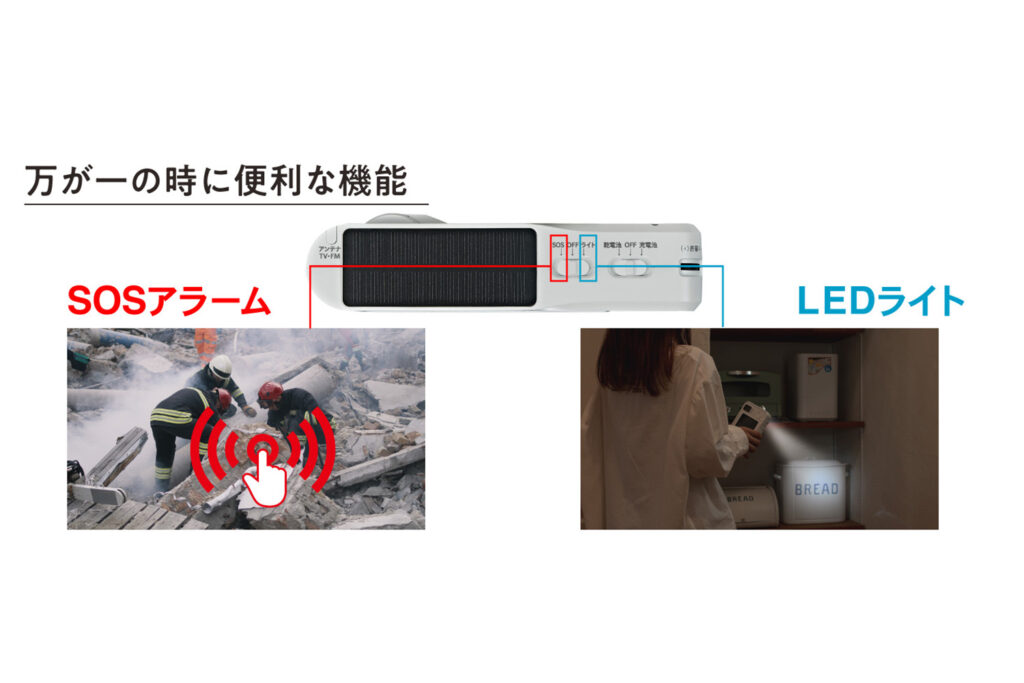 避難移動中や就寝中に流れた重要なニュース(緊急会見や配給情報など)を、MicroSDカード(別売)に録画・保存することができ、後から何度でも見返すことができ、聞き逃しや見逃しを防ぎます。