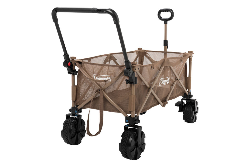 キャンプ場の駐車場からサイトまで、重い荷物を運ぶ際のスタンダードアイテムとして定着しているコールマンの「アウトドアワゴン」。今やキャンプシーンのみならず、スポーツイベントや公園遊び、さらには災害時の物資運搬など、あらゆる場面でその姿を見かけない日はありません。