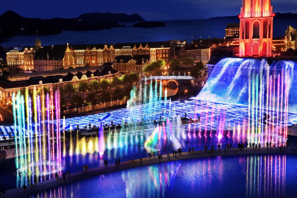 なかでも見逃せないのが「ウォーターマジック」です。音と光、そして高さ20mの噴水が連動した日本最大級のウォーターエンターテインメントは圧巻。