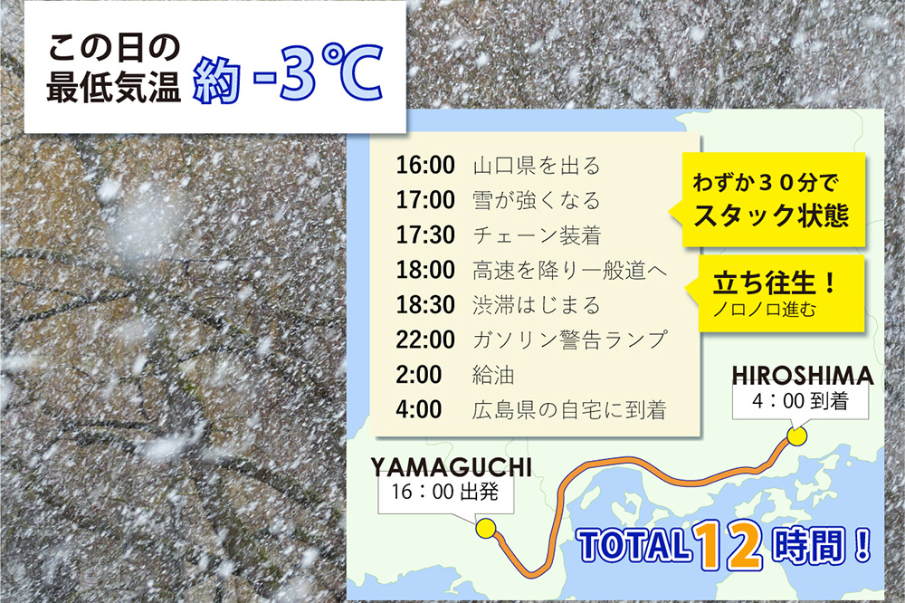 Bears Rockが目指すのは、単なる製品販売ではなく、すべての人に「安心という選択肢」を持ってもらうことです。山陽地方のような雪が少ない地域でも、ひとたび寒波が来れば道路は麻痺します。
