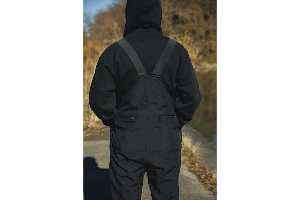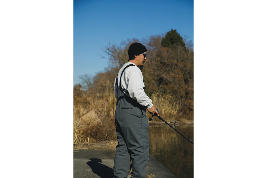 腰回りまでをしっかりと覆うビブ(胸当て)仕様は、しゃがむ動作の多いおかっぱりでも背中が出ることがなく、腹部から腰にかけての冷えを徹底的に防ぎます。