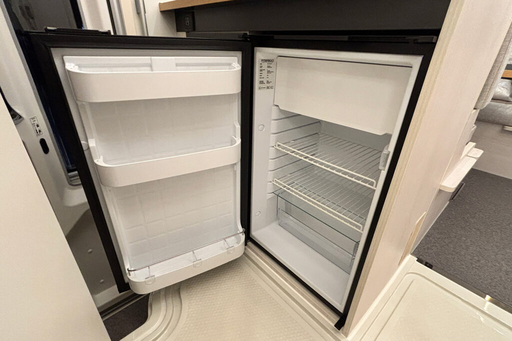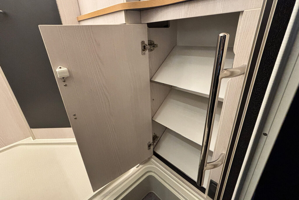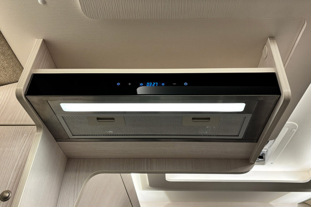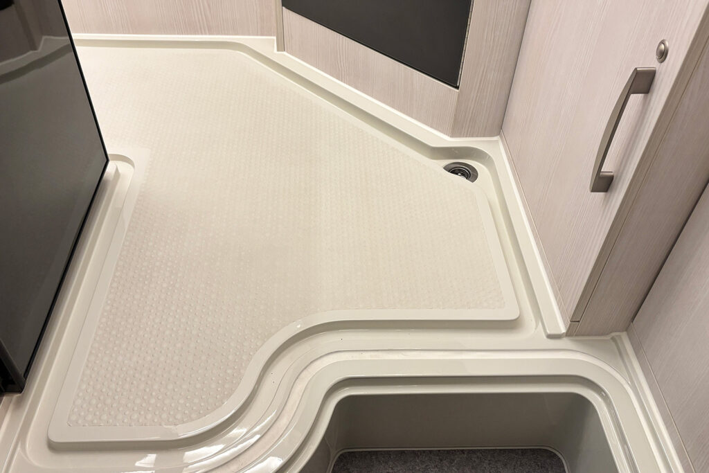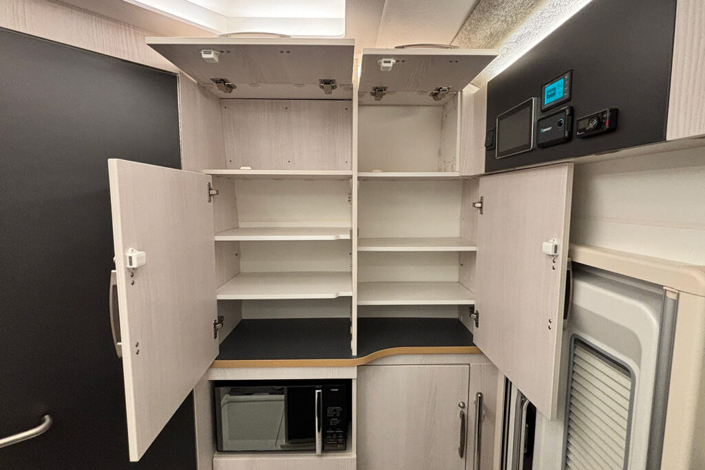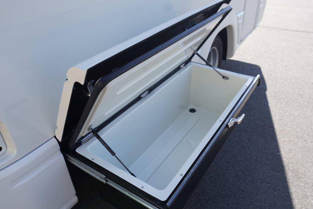 床下全体に張り巡らされた配管が均一にダイネットを温めるほか、温水ボイラーによりギャレーやシャワーで即座に温水が使用可能。 さらに、最大9600Whの大容量リチウムイオンバッテリーを選択できる電装パッケージにより、エアコンや電子レンジといった家電も場所を選ばずストレスなく使用できます。