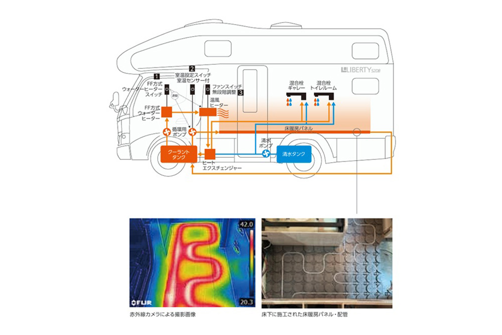 季節を問わず快適な旅を約束する最新テクノロジーも満載です。 特筆すべきは、電気式ではなくクーラント循環式を採用した「FF床暖房システム」です。