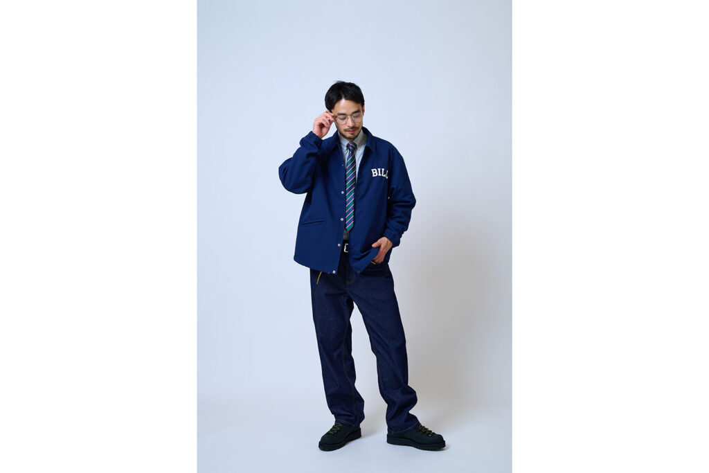 2月6日発売の「EUGENE COACH JACKET」は、カレッジテイスト漂うデザインが魅力です。 本来スポーツシーンで使われるコーチジャケットに、あえてタフなCAVEダック生地を採用。胸元には創始者の息子ビル・ダナーに敬意を表した「BILL」のロゴをプリントし、袖のコードには名作「ダナーライト」のシューレースを使用するなど、ブランドの歴史と拘りが凝縮されています。速乾性・防シワ性に優れた素材で、デイリーユースに最適です。