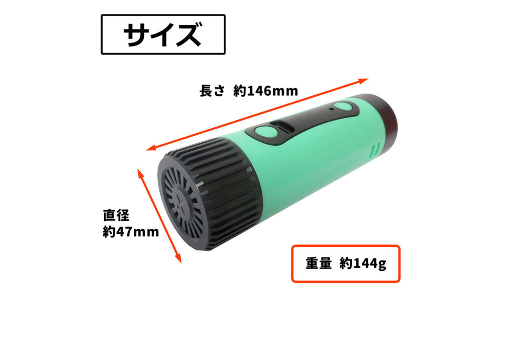 また、直径約47mm、長さ約146mmというコンパクトな筒型形状は、リュックのサイドポケットやベルトポーチにも収まりやすく、携帯性に優れています。充電方式には最新のUSB Type-Cを採用しており、スマートフォン用のモバイルバッテリーなどから手軽に充電できるのも、長期の山行や連泊のキャンプには嬉しいポイントです。