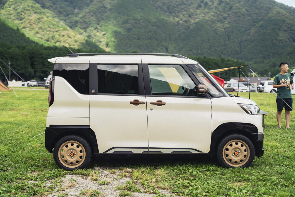 「ハケ塗りエンブレム」に「カフェラテホイール」! キャンプ好きユーザーが実践した三菱・デリカミニの「色合わせ術」