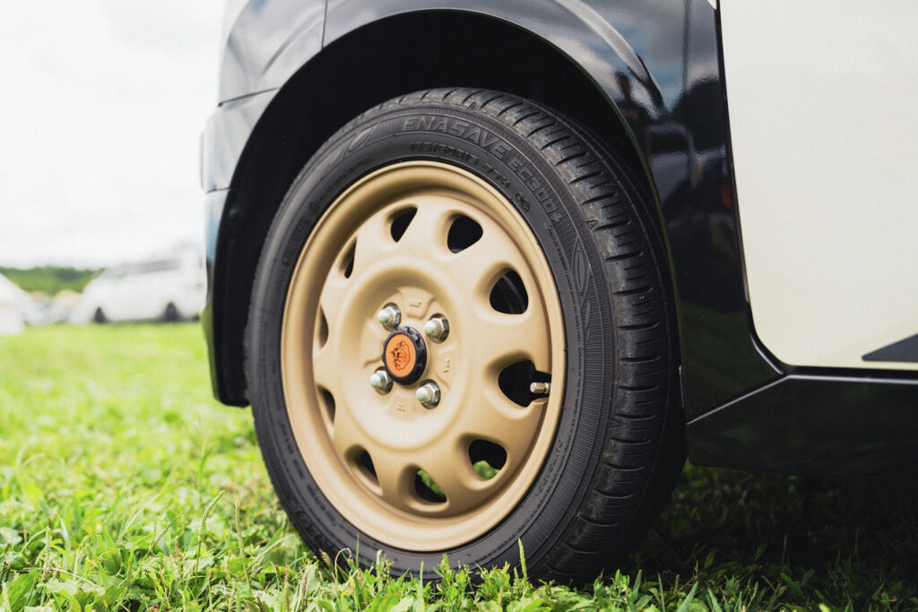 オフロードスタイルにハマるカラーバリエーションも特徴で、デリ太郎さんが選んだのは落ち着きを感じさせるカフェラテ。サイズは15インチで、純正タイヤをそのまま流用できるのも決め手となったとか。