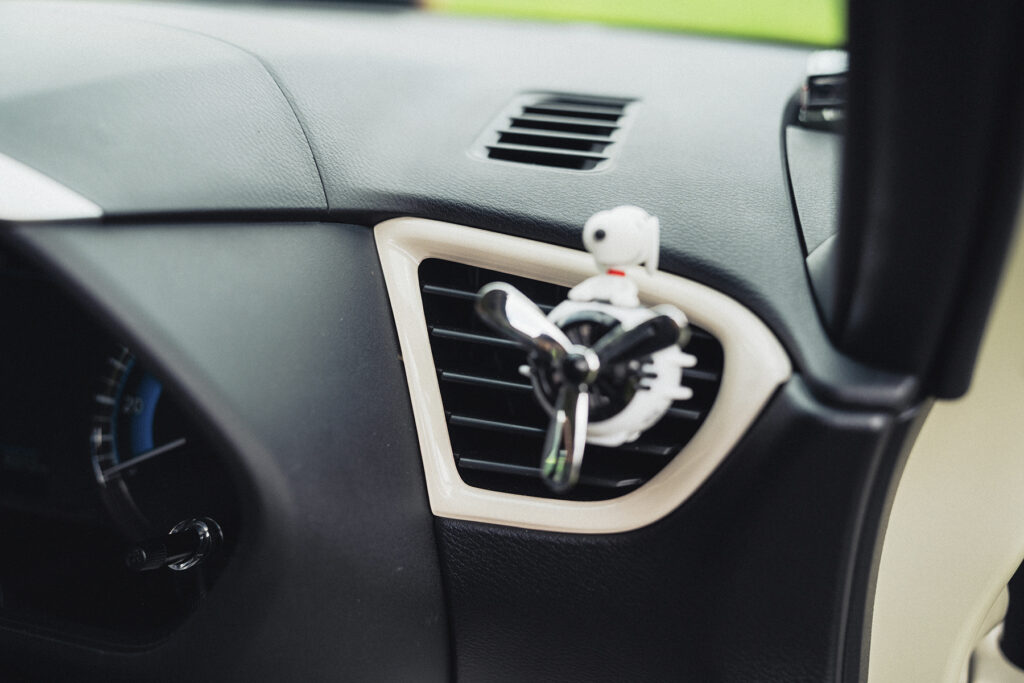ダッシュボードに置いたデリ丸など、ぬいぐるみのディスプレイが車内のかわいらしさを引き立てています。今後はオシャレなアウトドア系のシートカバーを装着したいそうです。さらに愛着が沸きそうですね。