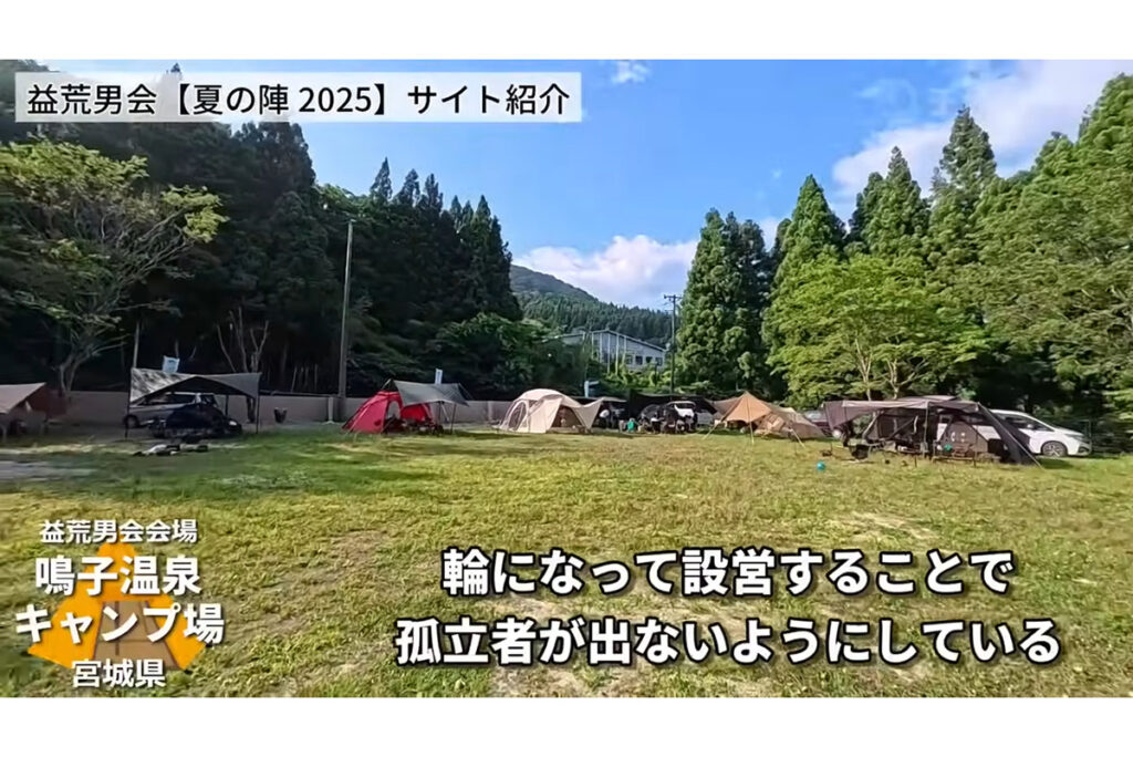 夏のアウトドアと言えば定番のキャンプ。ゆうさんが案内人を務めるキャンプ専門YouTubeチャンネル『チキューギ.』では、宮城県の鳴子温泉キャンプ場でおこなわれた「益荒男会・夏の陣2025」から5組のサイトを紹介しています。暑い中でも快適なサイトにするために、工夫を凝らしたこだわりの夏キャンプスタイル。それぞれの楽しみ方を見ていきましょう。