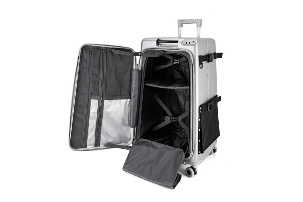 ボディ素材には、航空機や防弾ガラスにも使われる高強度ポリカーボネートを採用。さらに、歪みに強いアルミフレームを組み合わせることで、空港スタッフによる荷扱いや、過酷なアウトドア環境下での衝撃から、中の大切なギアを守り抜きます。