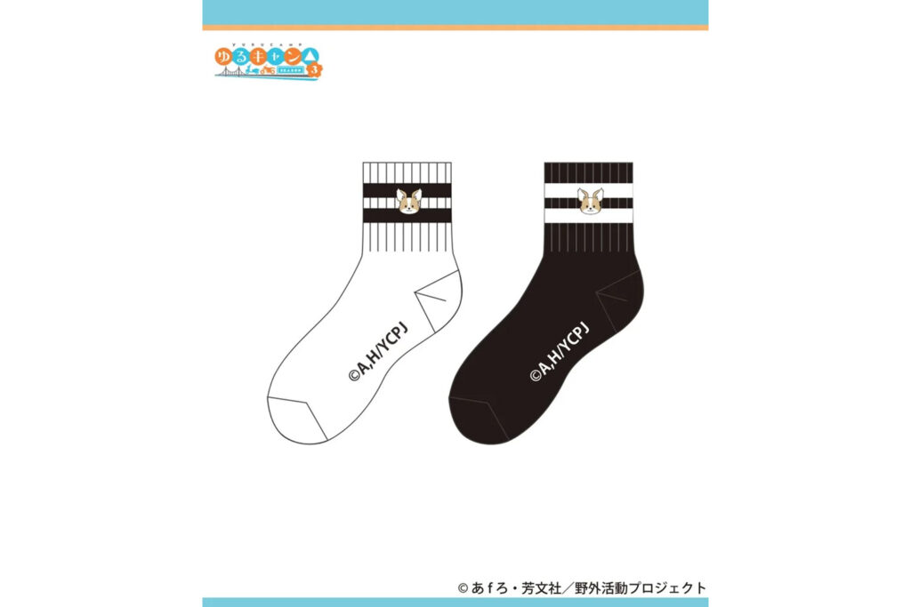 さりげないロゴ使いが光ります。ミニポーチ(税込1,690円)は、 各務原なでしこや志摩リンなど、キャラクターのイメージカラーを連想させる4色を展開。モバイルバッテリーやイヤホンなど、ガジェット類の収納にも重宝します。その他、2Pソックス(税込1,090円)は 「お洒落は足元から」を体現する、25-27cmのメンズサイズ。さりげない刺繍や配色で、日常の中に自分だけの「ゆるキャン△タイム」を演出できます。