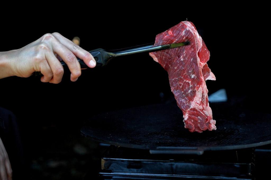 キャンプ中、トングの置き場所に困ることは少なくありません。このトングは、テーブルに直置きしても先端が浮く「リフト設計」を採用。汚れを拾わず、常に衛生的な状態で調理を続けることができます。