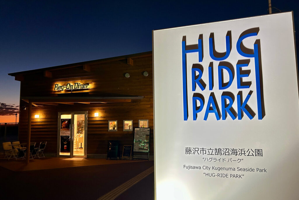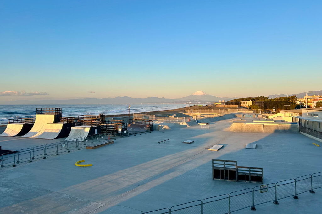 鵠沼海浜公園の愛称は「HUG-RIDE PARK」です。還暦オヤジの筆者も楽しんだことがある鵠プーこと、鵠沼ガーデンプール跡地にできたスケートボードやBMXが楽しめる最新スポットです。夜のイルミネーションを楽しむ前に朝日が昇る前から鵠沼海浜公園にスタンバイしました。