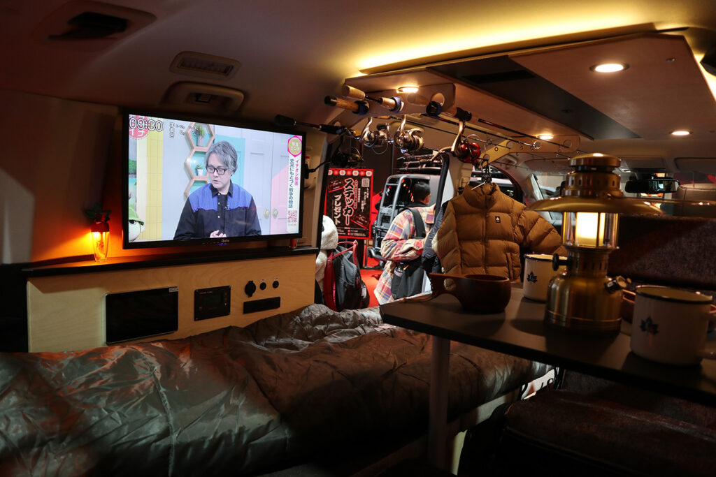 また、キャンピングカーには欠かせない300Ahのリチウムイオンバッテリーの搭載によりDC12Vのクーラーを使うことができ、四季を問わず快適に過ごせる機能を持つほか、外部充電や走行充電も可能。リモートワークでも活躍間違いなし。