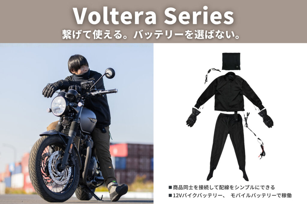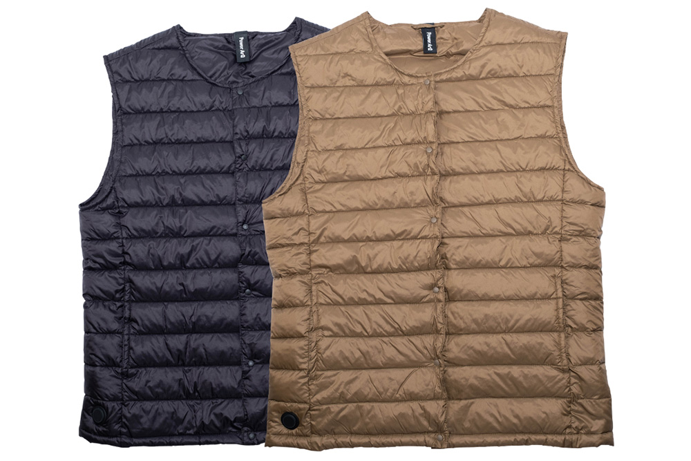 PowerArQは今年そのラインナップを大幅に拡充。とくに注目なのが、自由度の高い給電システムを備えた「Voltera(ヴォルテラ)シリーズ」の3アイテムです。まず「電熱ベスト (Electric Heating Vest)」にはカーボンナノチューブの速暖性が魅力であり、10,000mAhのバッテリーで約8時間の使用が可能(環境0度時)で、一日中の作業やアクティビティをサポートします。