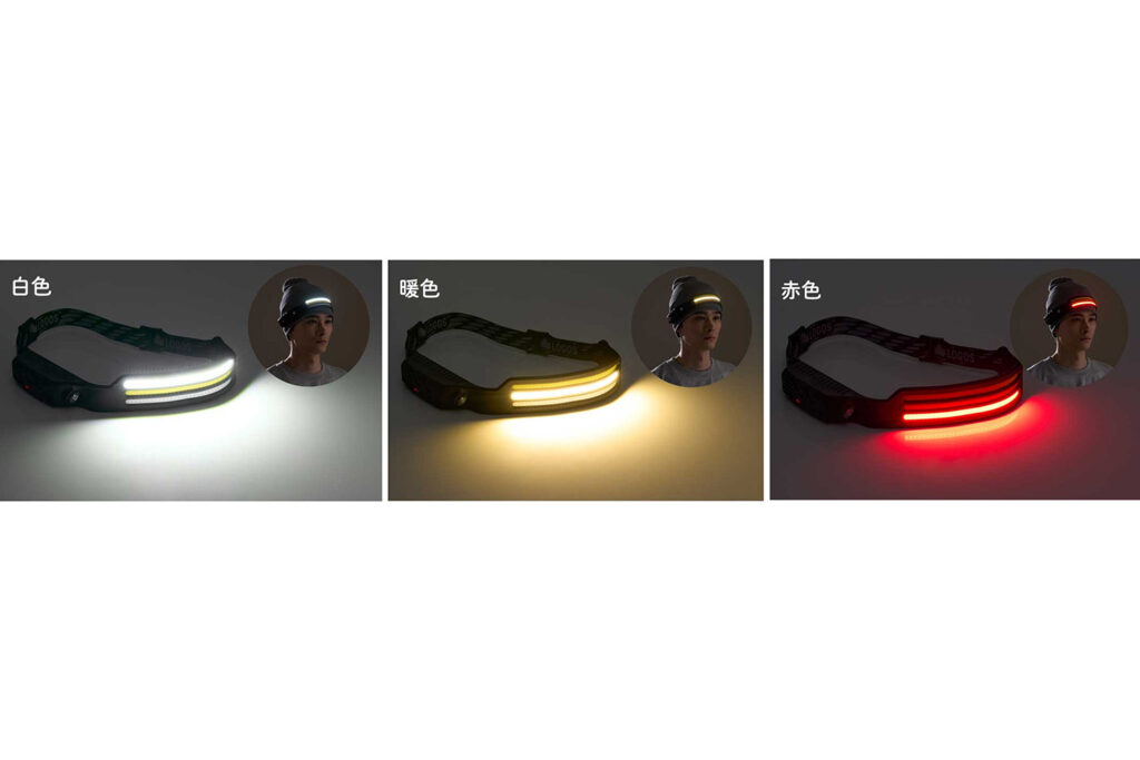 今回のラインアップで最も注目なのが、「野電ノンタッチヘッドバンドライト・USB」です。非接触センサーモードにより、手をかざすだけでON / OFFが可能。調理中や手袋をしている際、ボタンを探す手間がありません。また、超軽量シリコンボディによる頭にフィットする薄型設計で、長時間の装着でも疲れにくいのがメリットです。