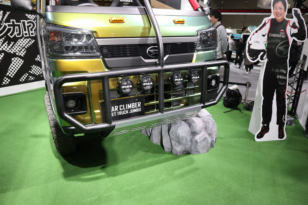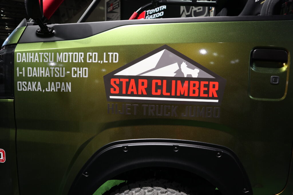 まずはダイハツの車両ですが、こちらは社内で結集して仕立てられた「ハイゼット・トラックジャンボ・スタークライマー」を名乗る一台は、スタークライマーを名乗る通り星まで駆け上がれる走破性をテーマとしたモデルです。