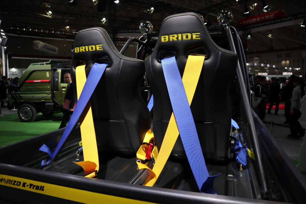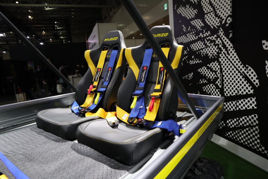佐々木氏の考え方の一つに、一人よりも二人、二人よりも大勢で遊んだ方が楽しいという考え方の基に4座仕様となっており、リフトアップしてターボを付けての段階での展示。すでにモリゾウさんのストライプやタイヤのサイドレターなども備わり、こちらも突貫で今後の進化に期待して欲しいとのこと。