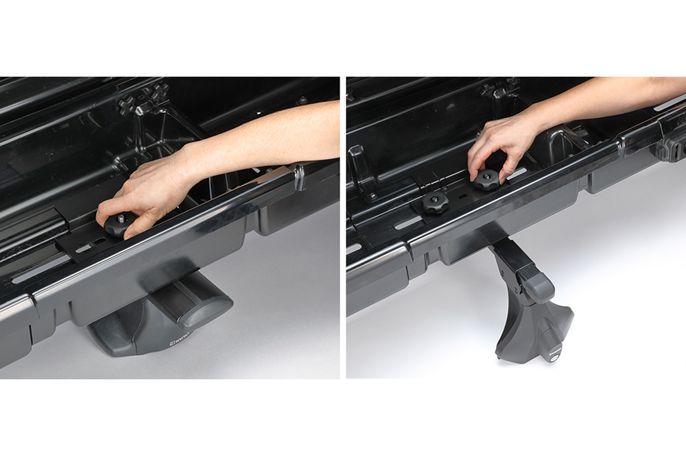 新たに「Tスロット」への固定に対応したことで、ベースキャリアのステー(支柱)の外側や真上にも設置できるようになりました。 これにより、ルーフの幅をフルに活用することができ、ロッドボックスの隣にカヤックを積んだり、キャンプ用のルーフボックスを併設したりといった、遊びの幅を広げるレイアウトが自由自在になります。