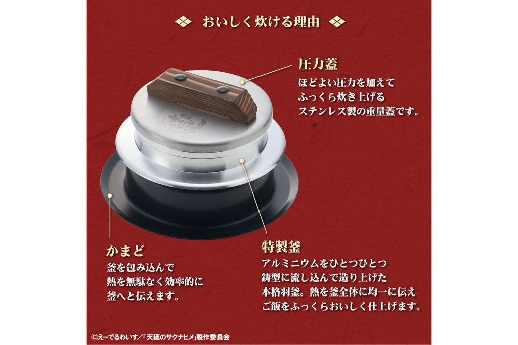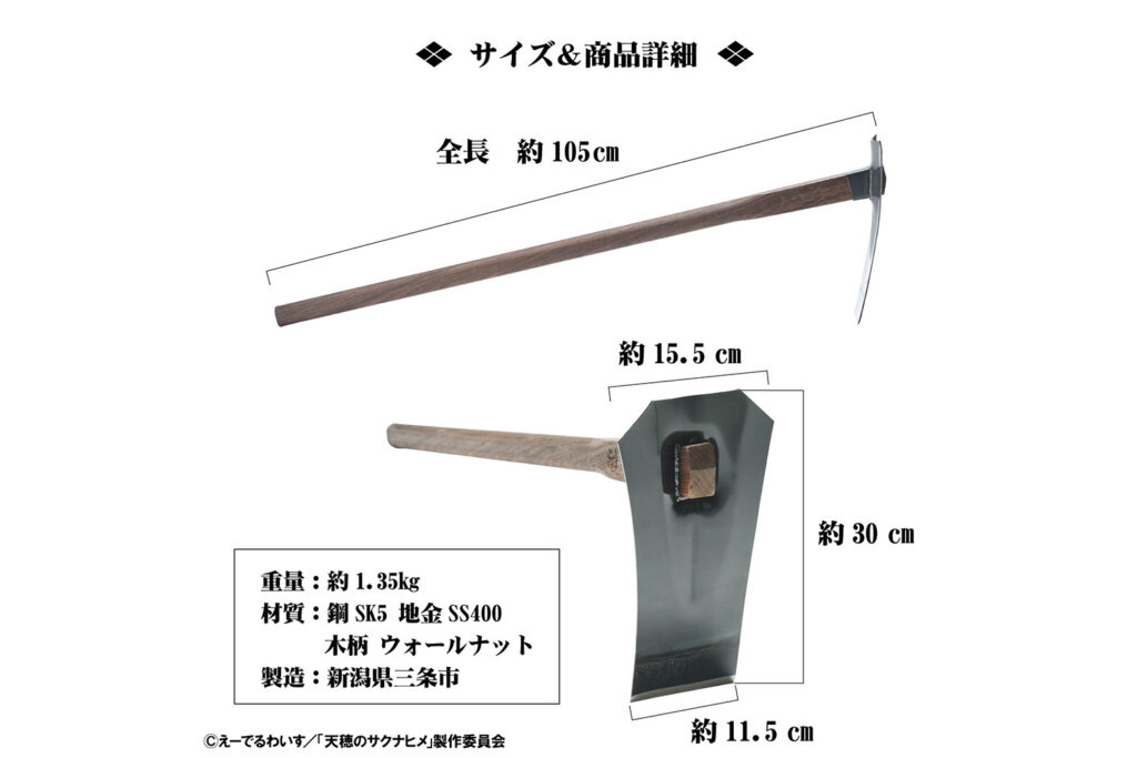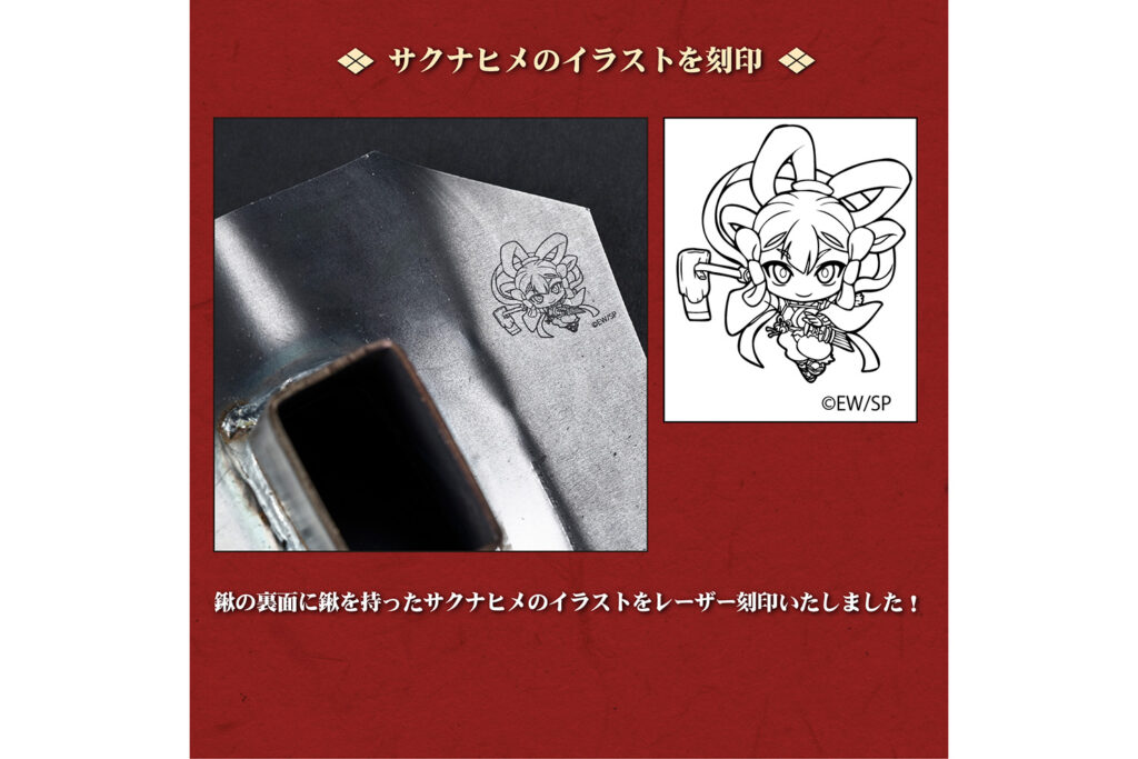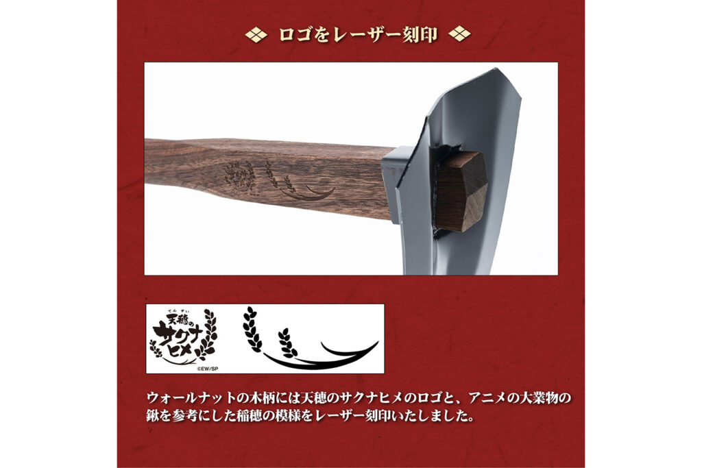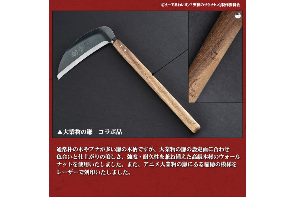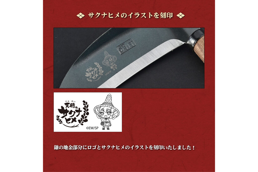 今回コラボレーションを果たすのは、本格的な稲作シミュレーションが話題となり、テレビアニメ化も果たした人気作『天穂のサクナヒメ』。神々が住まう「ヒノエ島」を舞台に、豊穣神のサクナヒメが米づくりを通じて成長していく物語は、日本の伝統的な農耕文化や道具の大切さを描いています。「本物の道具」を追求する村の鍛冶屋と、道具の力を借りて困難を切り拓くサクナヒメ。両者の深い共鳴から生まれた、珠玉の限定アイテムが期間限定の受注販売で登場します。