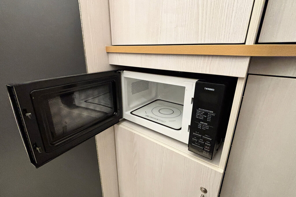 乗り込んですぐの場所に前向きのギャレー(キッチン)を配置。買い物から戻ってすぐに食材を冷蔵庫へ入れたり、屋外でバーベキューを楽しむ際にも車内と車外をスムーズに行き来できる動線を構築しました。右側には大容量のシューズボックスを備え、大人数での利用時でも玄関口が散らかるストレスを解消しています。