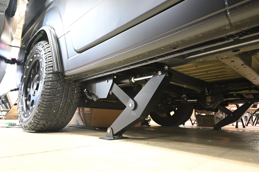 また運転席と助手席には国内シートメーカーのブリッド(BRIDE)とカヤバが共同開発した専用バケットシートを採用。乗車定員は4名で標準の就寝定員は3名ですが、コット等を持ち込めば4名での就寝も可能です。停車時の車体を安定させるアウトリガーを装備している点も、専門メーカーらしいこだわりと言えるでしょう。