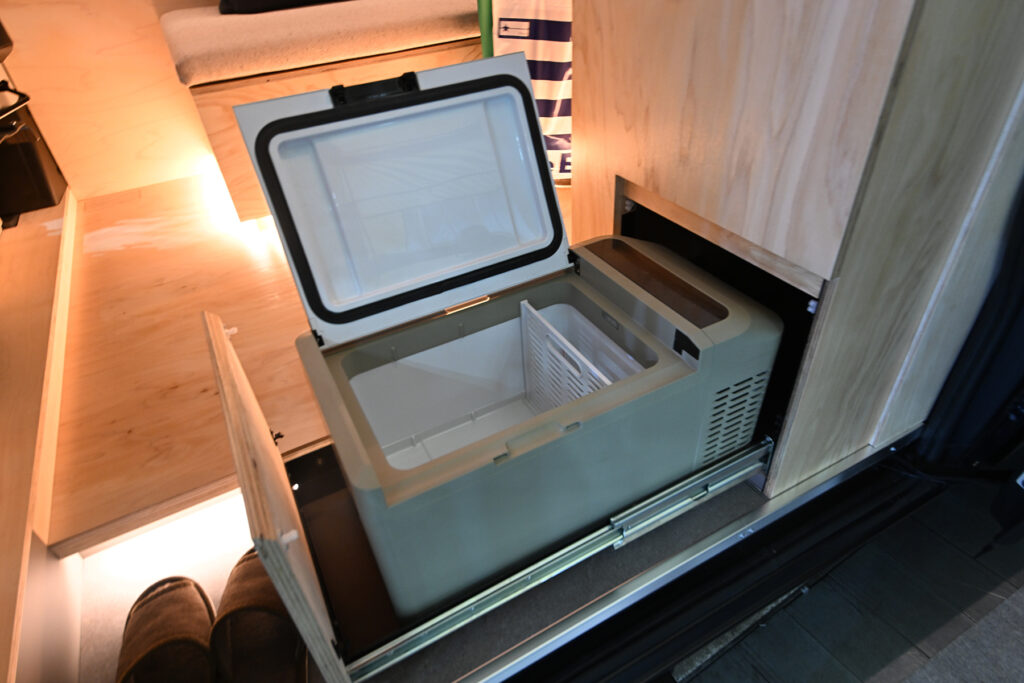 コラボレーションの真髄は、その内装にも宿っています。車室内は木材を活かしたシンプルかつ清潔感のある仕上がり。これは、スノーピークが建築家の隈研吾氏と共同開発したモバイルハウス「住箱(JYUBAKO)」の意匠を取り入れたものだといいます。こだわりが細部にまで反映された空間は、まさに「住箱」を彷彿とさせる上質な雰囲気を醸し出しています。