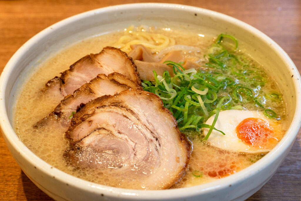 続いて紹介するのは、九州・福岡が誇る博多ラーメン。1941年頃、博多の屋台「三馬路(さんまろ)」から始まったといわれています。そして福岡の中で「とんこつ御三家」として知られるのが、博多・長浜・久留米。