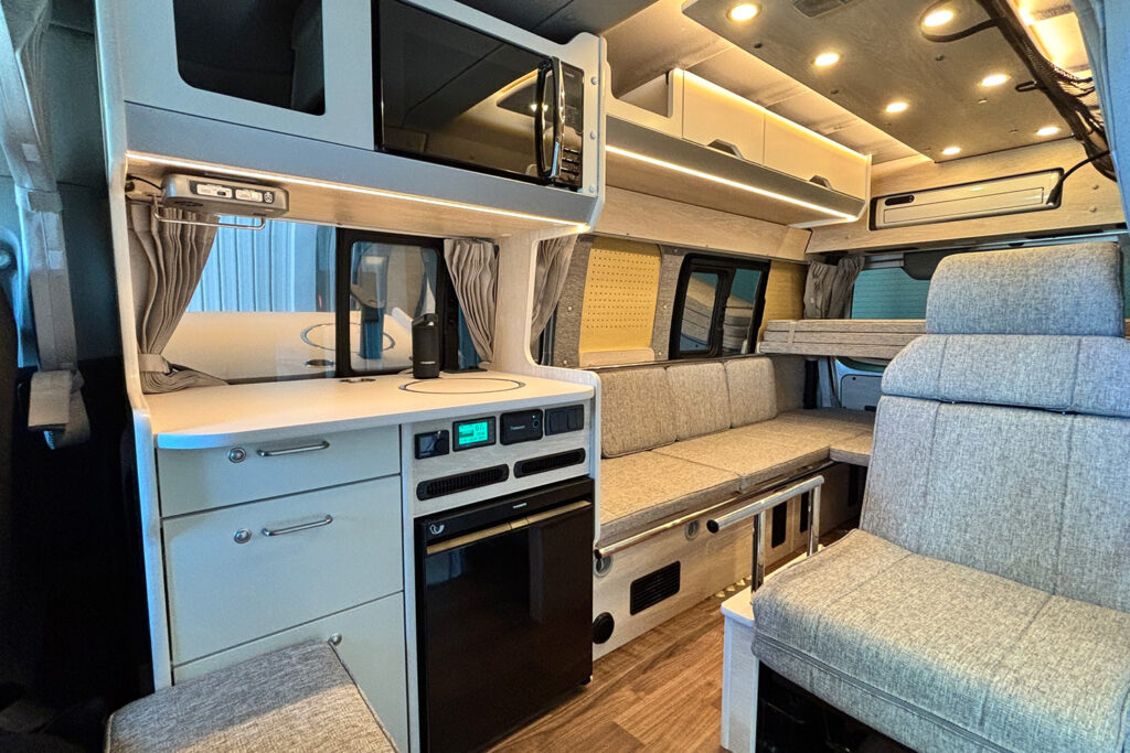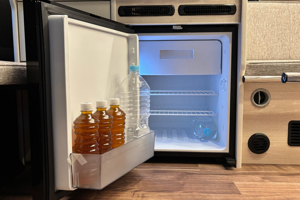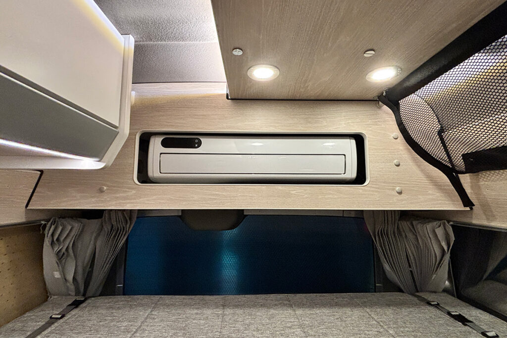 クーラーパッケージプラス2を選択すると、リチウムイオンバッテリー500Ah、インバーター3000W、12Vクーラー専用外部電源口、ポータブルバッテリー電源口、外部電源装置(50Aチャージャー)、100Vコンセント、そして、断熱加工がセットで搭載されます。また、オプションで薄型ソーラーパネル250Wを最大2枚追加することも可能です。