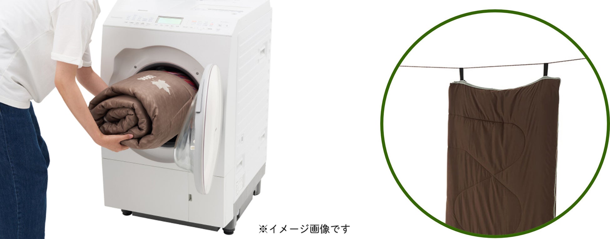 また、生地には撥水加工が施され、飲み物をこぼした時や結露で濡れてしまった時でも、サッと拭くだけでOK。大型の洗濯機での丸洗いが可能でお手入れも簡単。寝袋を陰干しする際に便利なハンガーループも付き。収納袋の底面にはハンドルを搭載。持ち運びしやすいため、キャンプなどのアウトドアはもちろん、合宿や自然学校などの宿泊行事のほか、お泊まり会にも最適です。