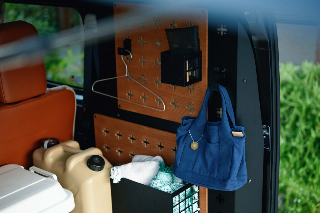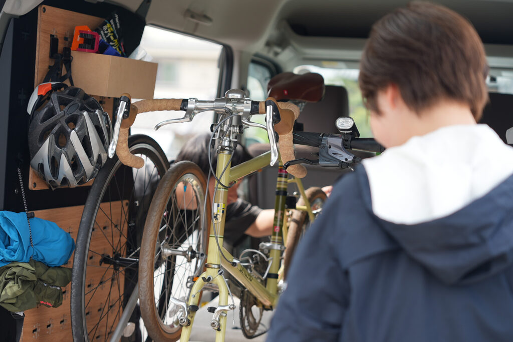 重いキャンプギアや自転車を壁面固定しても、ガタつかず、脱落しないタフな固定構造を実現しました。また、ボルトオン構造を採用しているため、車両の点検やメンテナンス時には必要に応じて取り外すことができ、実用面での配慮も万全です。