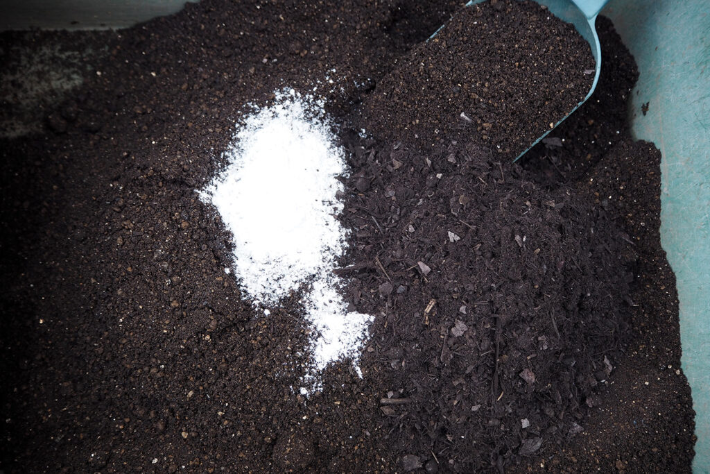 ちなみに、一度収穫したプランターの土もリサイクルが可能なため、捨ててはいけません。固くなってしまった土はほぐして、粉末の醗酵油カスを土に混ぜて栄養を補給。さらにアルカリ資材の有機石灰を混ぜて弱酸性の土に戻し、ミネラルを補充することで再利用することができます。