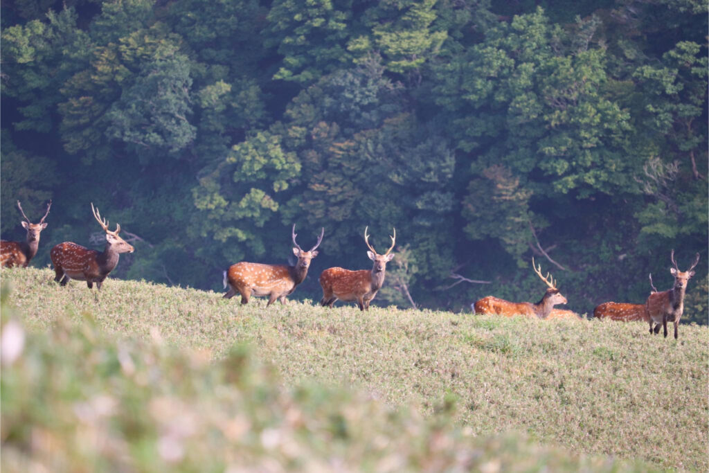 ニホンジカは、日本列島の環境に合わせて進化し6つの亜種に分かれています。日本最大級で最大150kgにもなる北海道の「エゾシカ(下の写真)」、本州の「ホンシュウジカ」、四国・九州の「キュウシュウジカ」、屋久島の「ヤクシカ」など、島特有の環境に適応しています。
