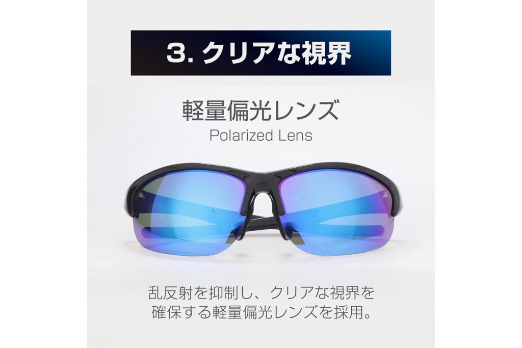 ■主な特徴:偏光レンズ、スポーツ対応フィット