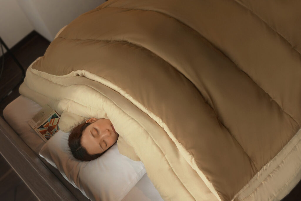 ■コンセプト: 包まれないのに、あたたかさが続く「寝袋発想」の掛け布団