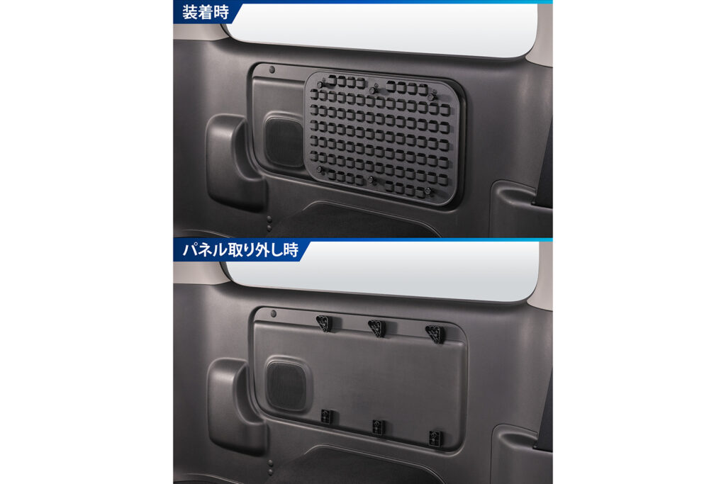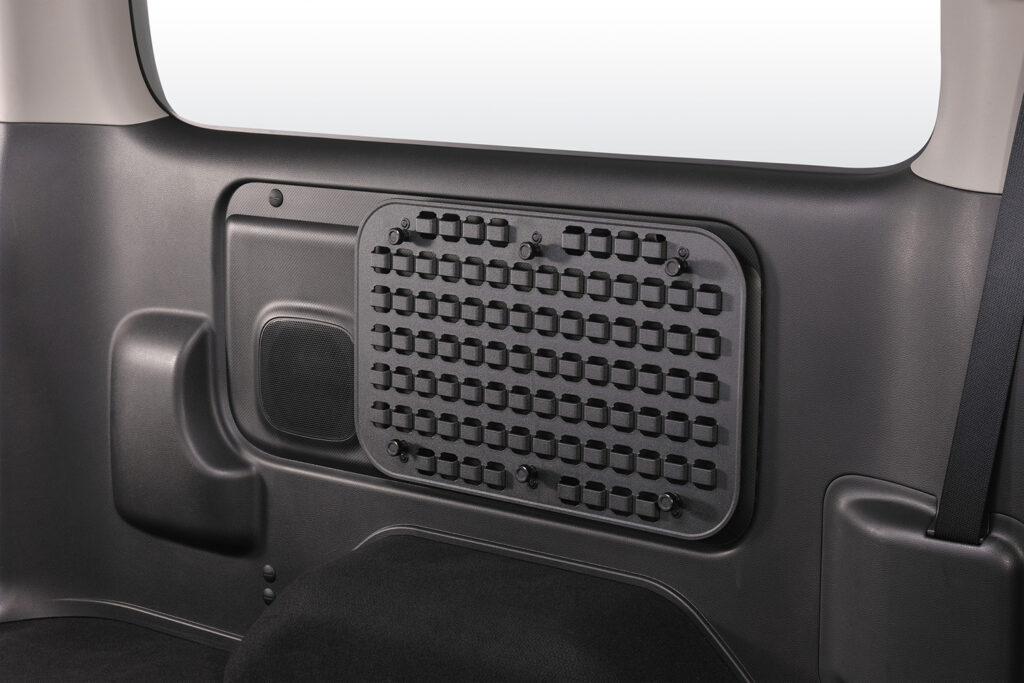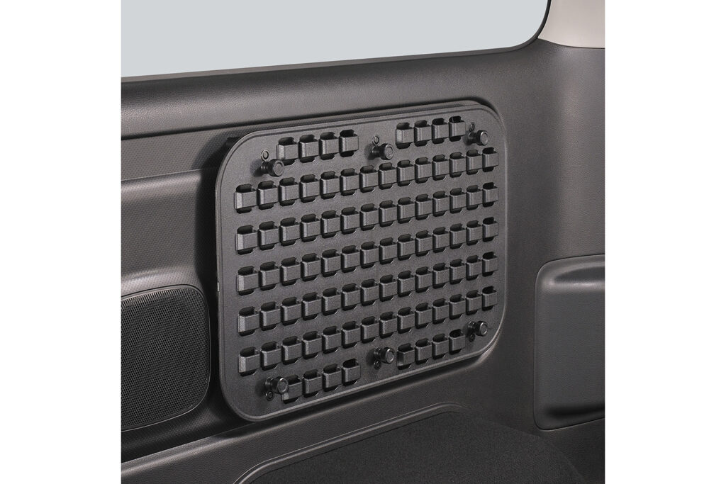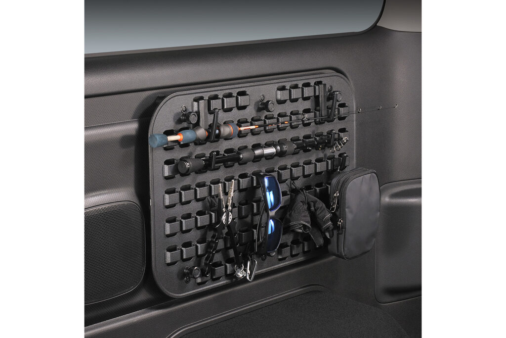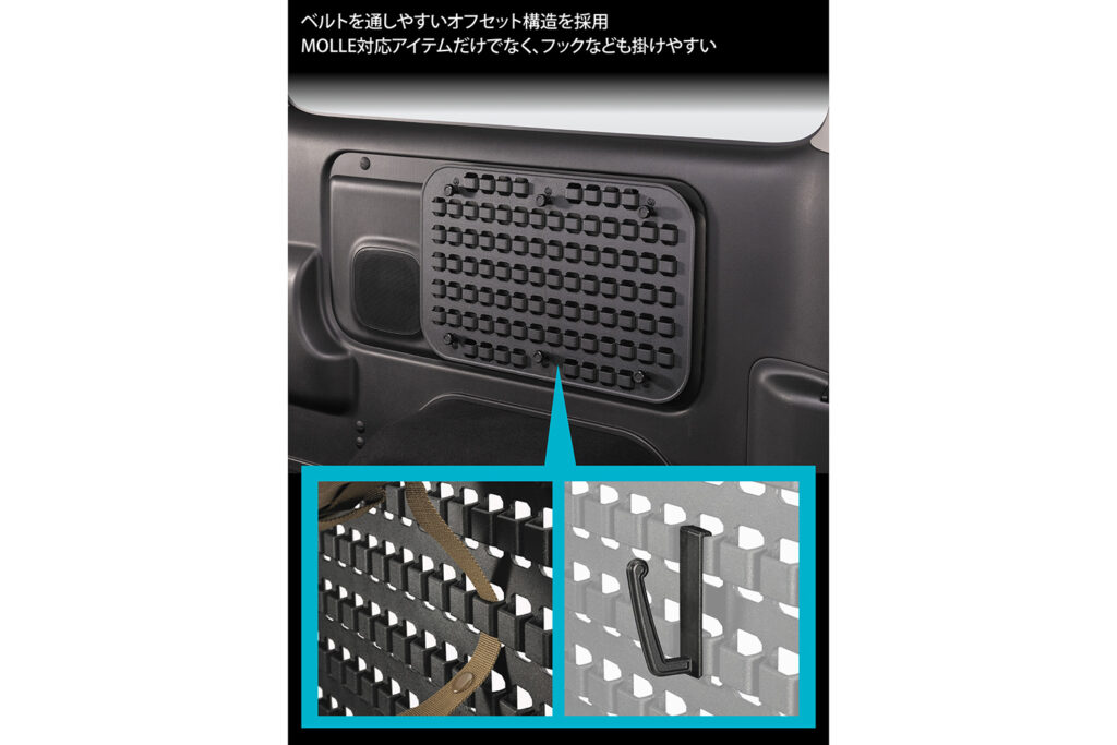 カーメイトが今回着目したのは、これまで活かしきれていなかった「凹み」と「壁面」です。ダッシュボードやセンターコンソールの純正形状を徹底的にスキャンし、ミリ単位で設計。さらに、近年トレンドとなっている「MOLLE(モール)システム」を車内に持ち込むことで、キャラバンの収納力を次元の違うレベルへと引き上げました。