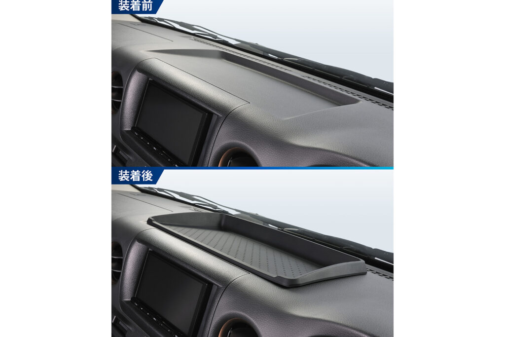 マルチコンソール仕様車専用に設計されたこのトレーは、スマートフォンやクルマのキーやサングラスなど、頻繁に出し入れするアイテムの特等席となります。素材にはシリコンの安心感により滑り止め効果のあるシリコン素材を採用。
