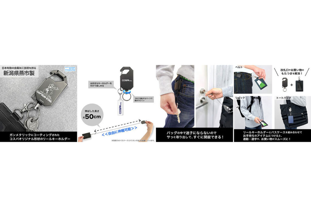 燕市製リールキーホルダーは、金属加工の聖地・新潟県燕市で製造されたキーホルダーは、ガンメタリックの質感と50cm伸びる実用性を兼備。キャンプ中のライトやカギの紛失を防ぐ、まさに「現場の声」を反映した逸品です。また、ニュースペーパーバッグの汎用性により、「志摩リン バイクでひといきVer.」の描き下ろしイラストが施されたこのバッグは、厚手のキャンバス生地にDカンを装備。前述のポータブル電源やエレコムのケーブルを放り込んで、そのままバイクパッキングや聖地巡礼に出かけたくなる高い完成度を誇ります。