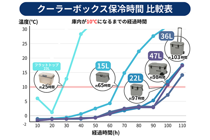 この製品が選ばれる最大の理由は、冷蔵庫の断熱材としても使われる高機能な「真空パネル」を贅沢に使用している点にあります。冷気を逃さない多層構造により、底面と四方の計5面に真空パネルを配置。外気温の影響を最小限に抑え、真夏の連泊キャンプでも氷が残るほどの圧倒的な保冷時間を実現しました。