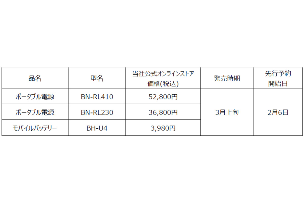 ポータブル電源「BN-RL410」「BN-RL230」