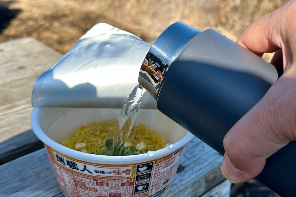 ニトリで買った超保温ボトルが大正解! 山ごはんに早朝入れた熱湯で「カップ麺」と「おにぎり」と「珈琲」でホッカホカ