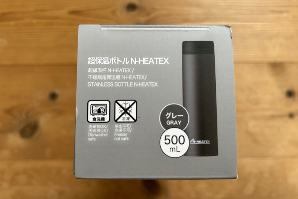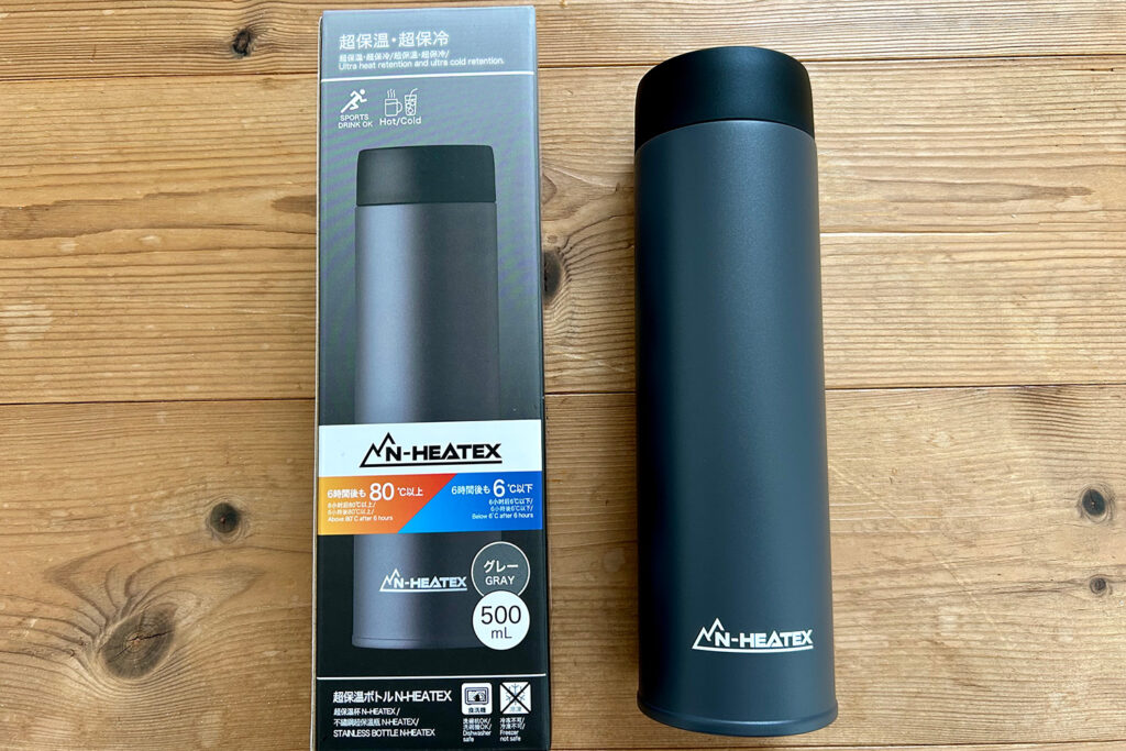 今回の日帰り登山のランチ用にニトリの超保温・超保冷ボトルN-HEATEX(500ml)を1,990円で購入しました。保温効力は80℃以上で6時間。保冷効力は6℃以下で6時間とのこと。